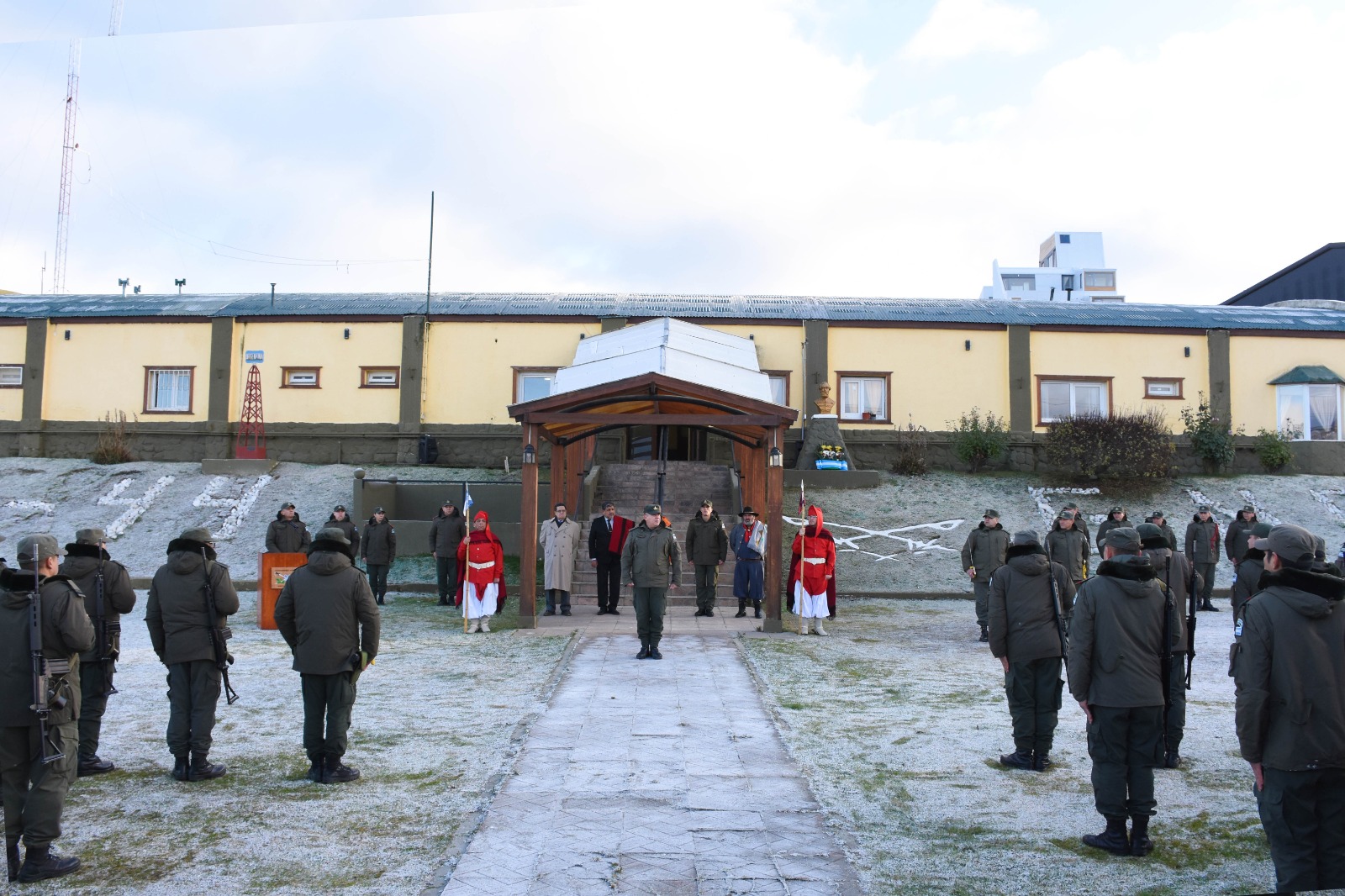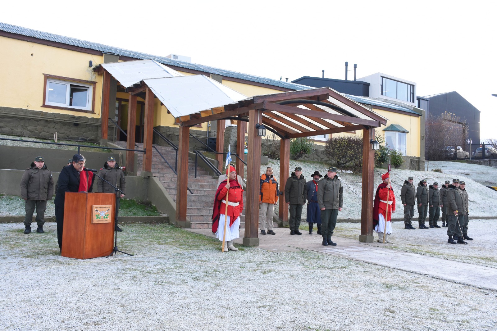 El Acto se desarrolló en el Escuadrón 44 Ushuaia, fue presidido por el titular del Escuadrón44, comandante Diego Fretes; el Delegado del Instituto Güemesiano de Salta en Tierra del Fuego, Juan Carlos Arcando; el Presidente de la Asociación Sanmartiniana en Ushuaia, coronel (RE) Guillermo Llorente; por la Asociación Gaucha, Pedro “Gaucho” Barria; y por los integrantes de la Agrupación Señor y Virgen del Milagro y de Residentes Salteños en Ushuaia, Roberto Sandoval y José Padilla, que dieron colorido al acto vistiendo el uniforme de los Infernales de Güemes.